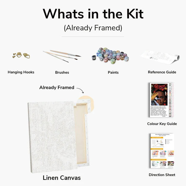 Each of our paint-by-numbers kits includes everything needed to create a stunning artwork from scratch: a pre-printed, high-quality canvas with numbered sections, non-toxic acrylic paints matched to each segment, and professional-grade brushes. Our kits make painting simple and enjoyable, perfect for all skill levels. Follow the guided numbers to bring each scene to life, whether it's a vibrant landscape, animal portrait, or abstract design. Enjoy hours of relaxation, creativity, and the satisfaction of creating your own wall-worthy masterpiece!